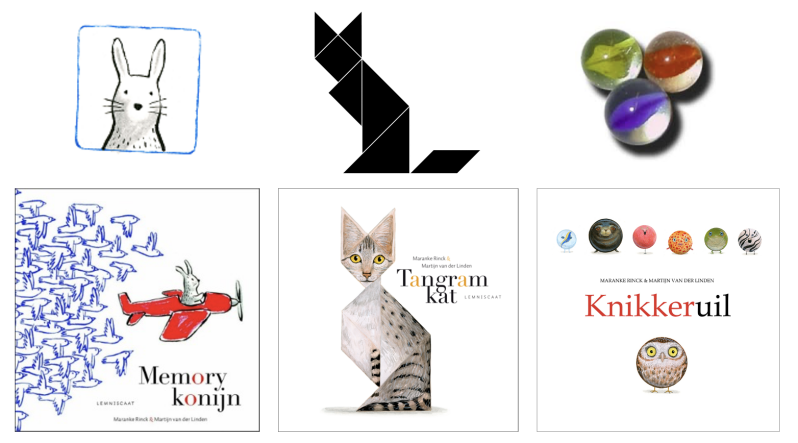 Het eerste speelprentenboek dat ik maakte was Memorykonijn. Een boek over EN met het spel memory. Daarna volgde het prijswinnende Tangramkat en daarna maakte ik - natuurlijk ook weer, met illustrator Martijn van der Linden het prentenboek van de Kinderboekenweek: Knikkeruil. Deze boeken nodigen de lezer uit na het lezen ook lekker met het boek te spelen. En daarmee vergroten we de wereld van het verhaal. Bij deze en andere boeken zijn leuke materialen om te downloaden. Neem maar eens een kijkje!